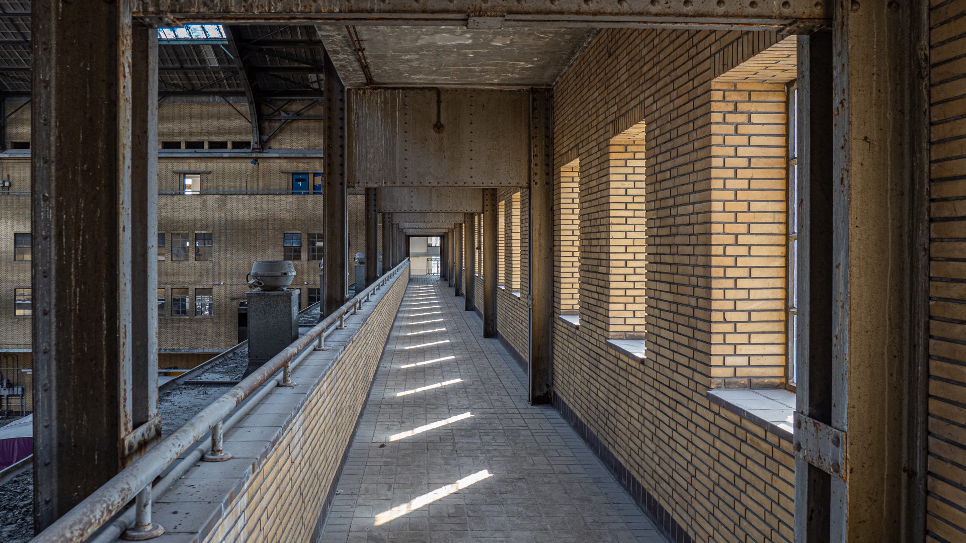 Het gebouw wordt nu gebruikt als bedrijfsverzamgebouw en evenementruimte. Het is sinds enige tijd te bereiken via de een 300m lange verhoogde loopbrug die vanaf de straat naar de markthal leidt. We hebben de brug ontworpen met het steiger materiaal dat is eerder is gebruikt om de gevels te restaureren. Het volgende grote project waar we aan werken is de restauratie van het grote dak en daklichten.