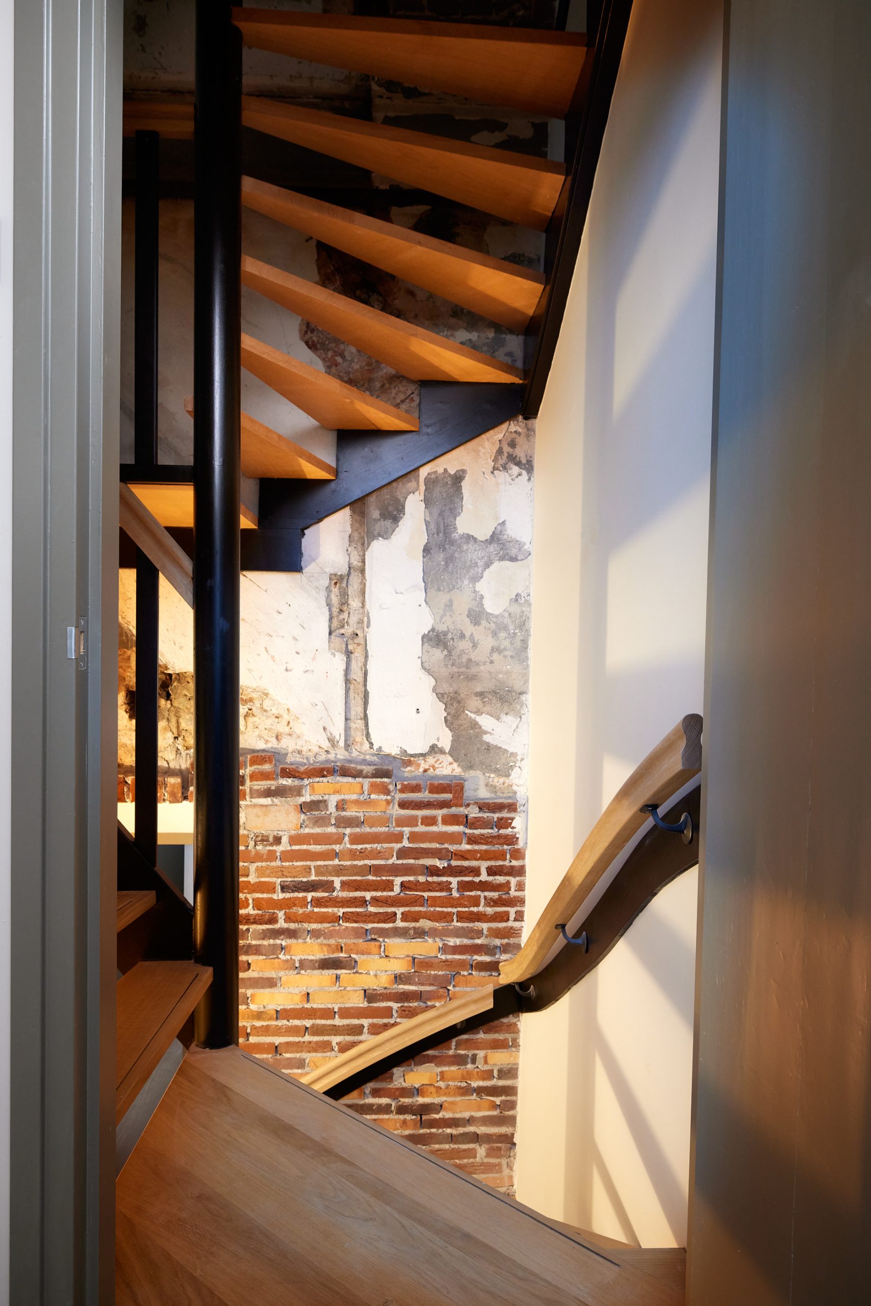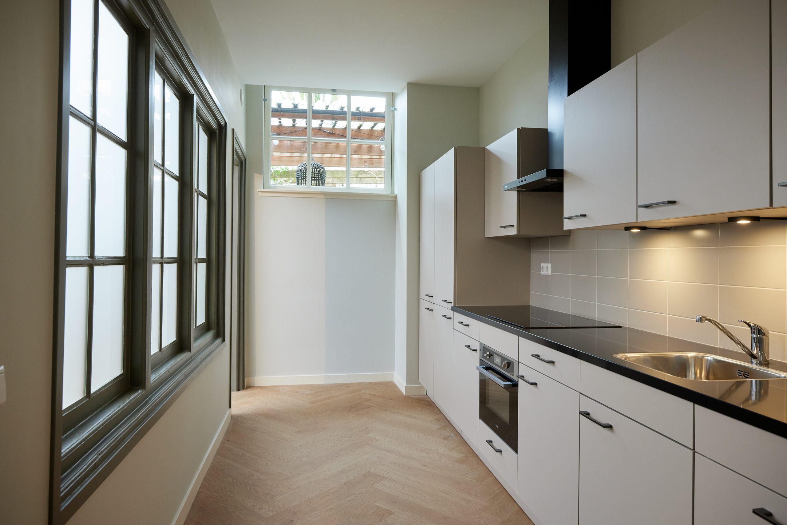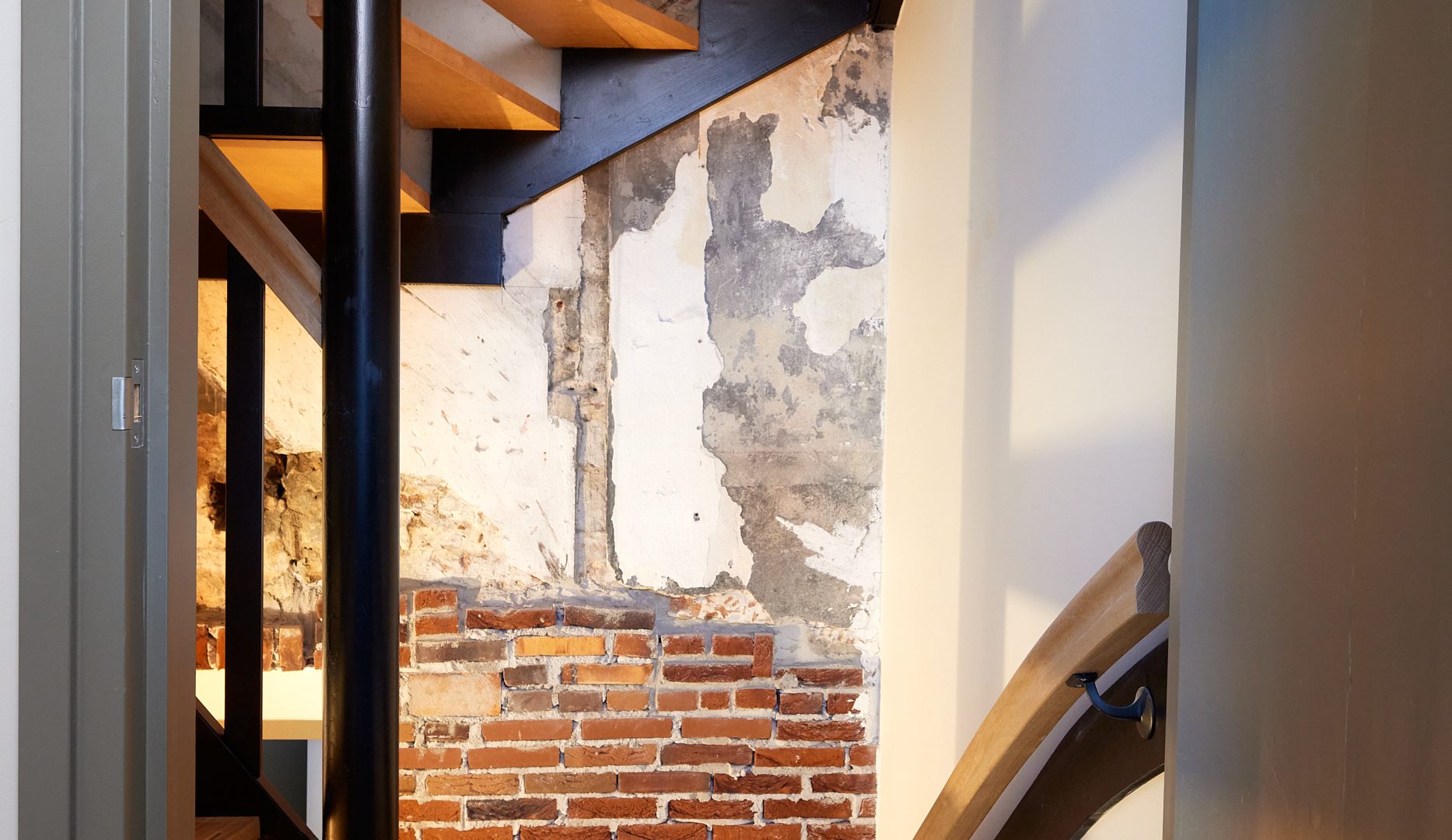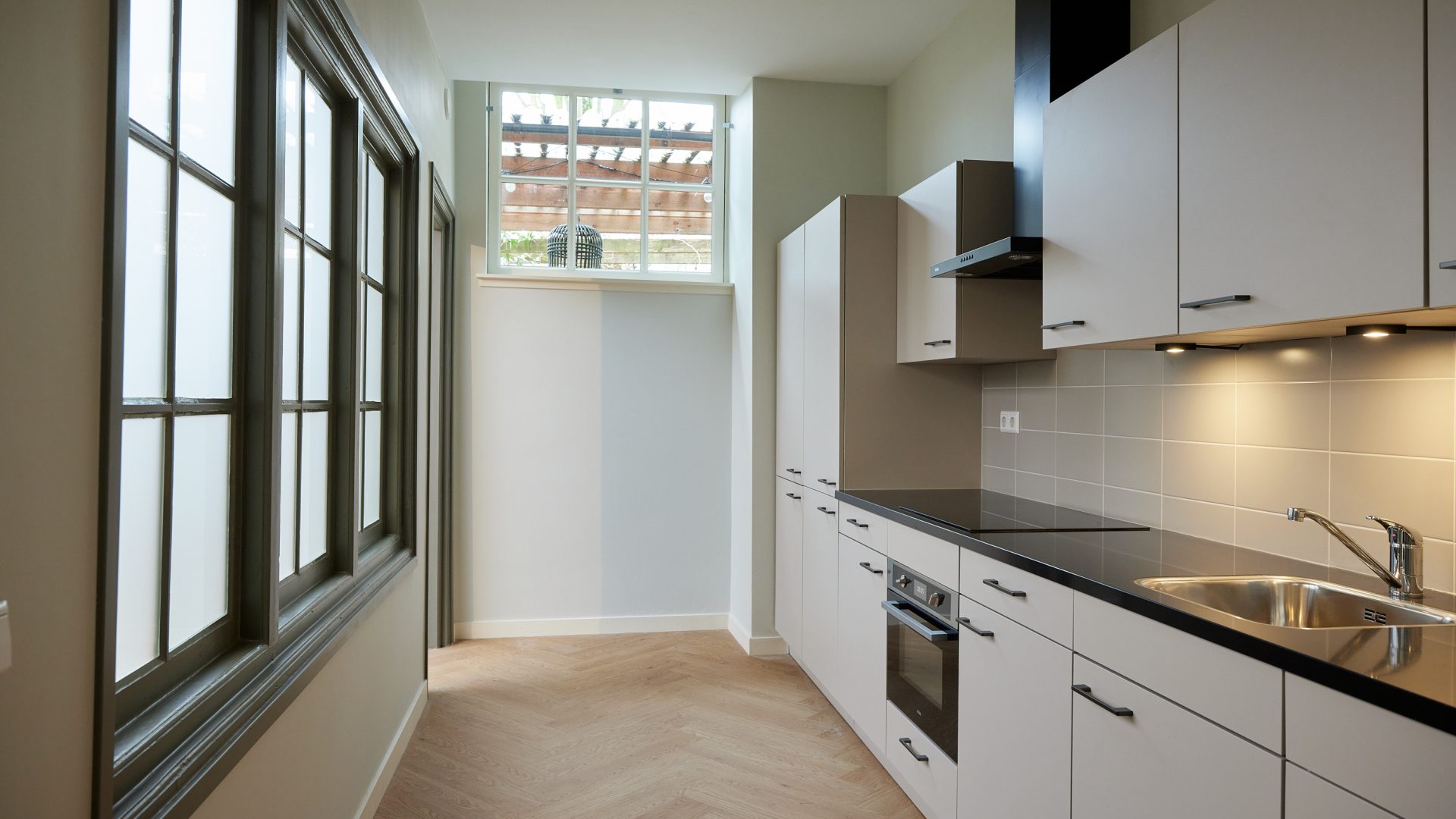 Bij de herontwikkeling was de smalle winkelfront met het grote vloeroppervlak een uitdaging. Voor zowel winkels als horecagelegenheden is een breed gevelfront immers belangrijk. Uiteindelijk realiseerden we twee woningen op de begane grond en verdiepingen van het achterhuis, en in de oude banketbakkerswinkel werd opnieuw een bakkerij gevestigd.